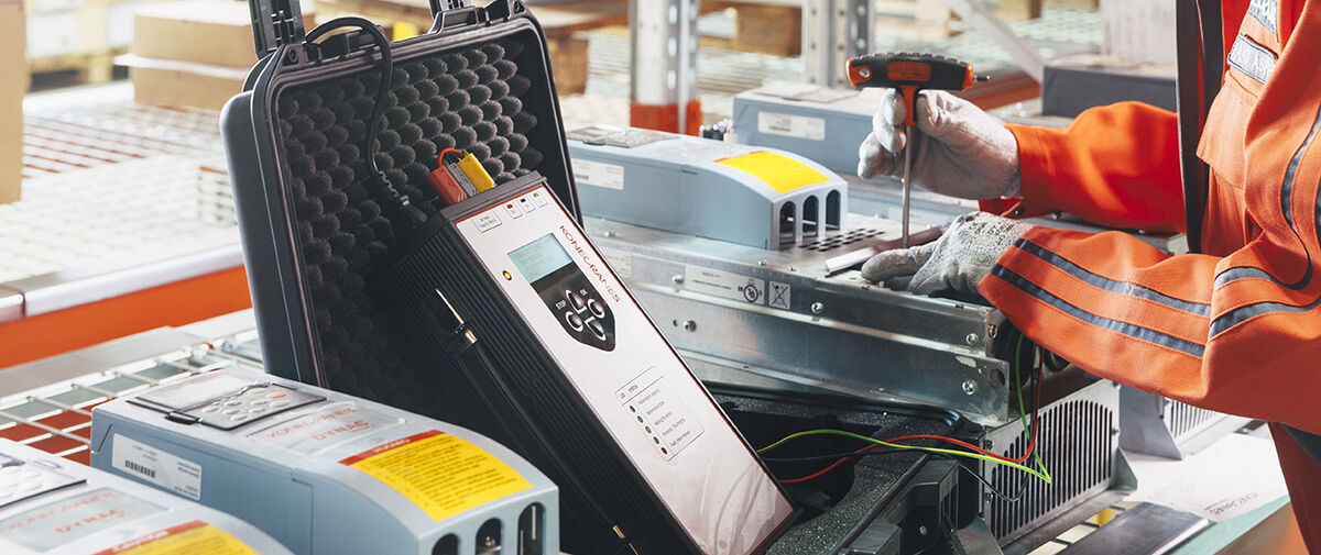 科尼變頻驅(qū)動電容充電是為了您備用的變頻驅(qū)動充電而設計的,充電過程無須將它從您的廠房移至他處??颇岬募夹g人員將使用全自動便攜式直流電源對您驅(qū)動的直流母線上的電容器進行充電。
